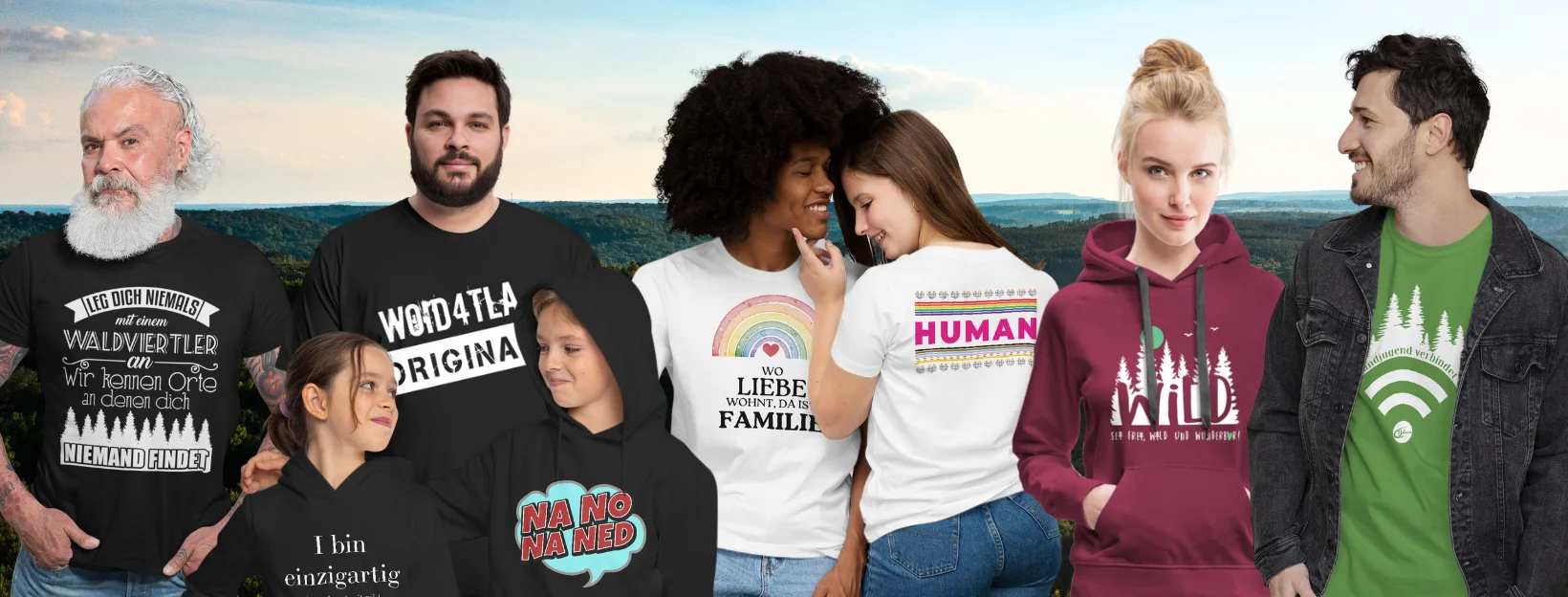 Wir sind deine kreativen Leiberl-Designerinnen aus Bergland. Seit 2016 findest du bei uns Leiberl, Hoodies, Taschen, Sticker & mehr – für Waldviertler Originale, „Zuagroaste“, Mostviertler Dirndln, Landjugendliche, Fans der österreichischen Mundart sowie individuelle Wunsch-Designs für dich, dein Team, deinen Verein, deine Firma, dein Event oder deinen Polterabend.